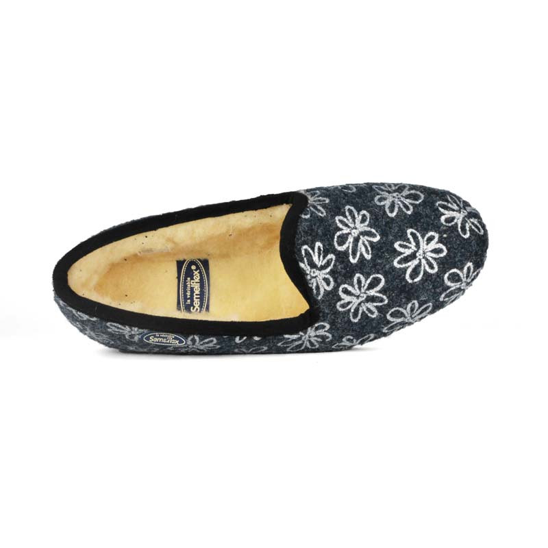 Charentaises femme de la marque SEMELFLEX doublées de véritable laine de mouton, un thermorégulateur naturel. Grâce à ce dispositif, vos pieds sont protégés contre l'humidité et resteront bien au chaud tout l'hiver. Confortables, les chaussons fourrés vous raviront par leur confection soignée, leur flexibilité et leur maintien optimal au pied.