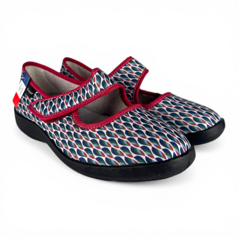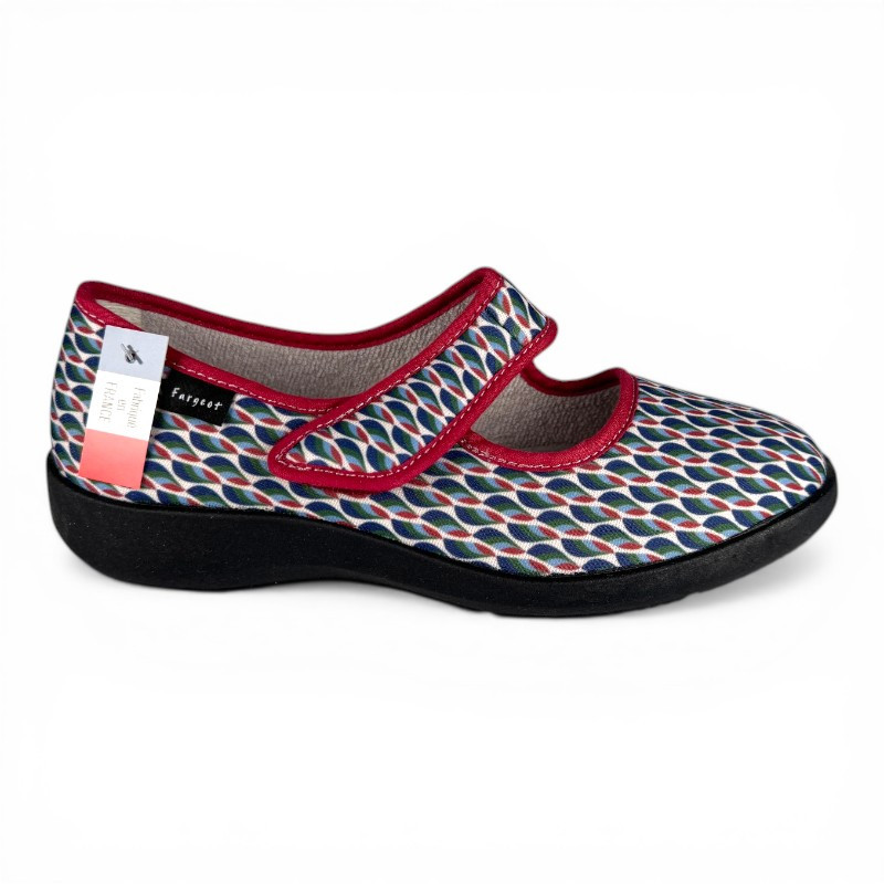 Les jolies ballerines TESSA de la marque FARGEOT, en textile fantaisie, sont dotées d'une bride Velcro. Elles s'ajustent ainsi parfaitement à vos pieds et vous offrent leur confort et leur facilité à vous chausser au quotidien. La semelle amovible tout comme la semelle extérieure flexible sont d'autres atouts pour votre confort.