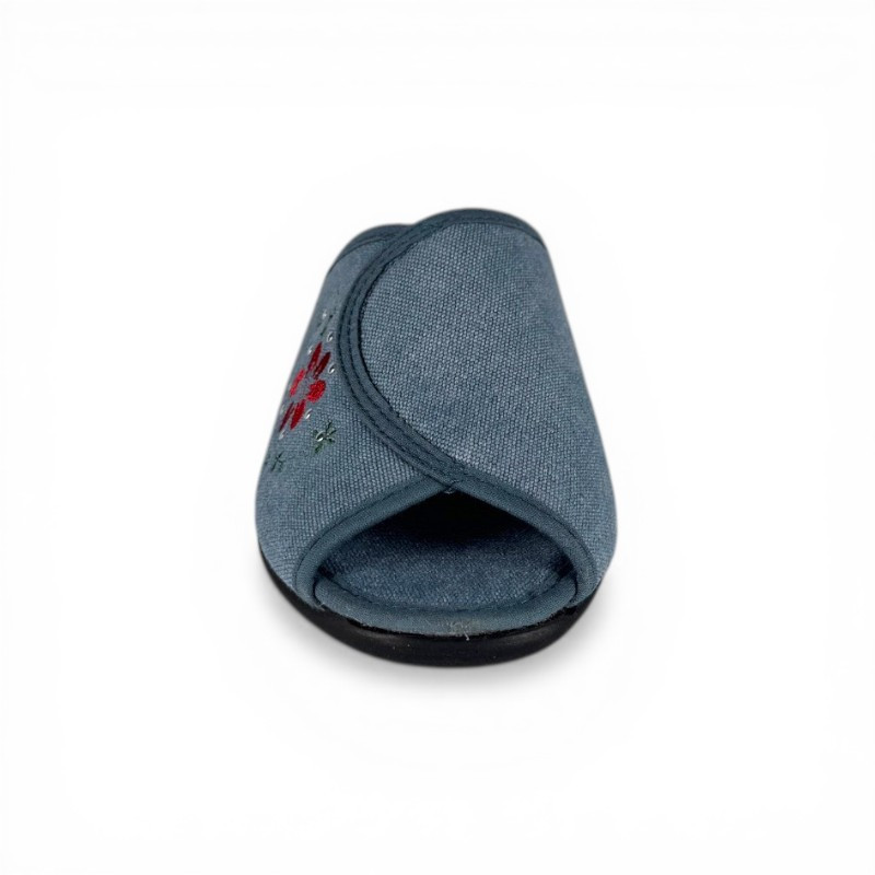 Les chaussons mules estivaux pour femme SHEILA de la marque SEMELFLEX sont proposés avec l'avant ouvert. Ils offrent du confort et un bon maintien aux pieds, et une semelle en caoutchouc antidérapant avec un petit talon de 40 mm.