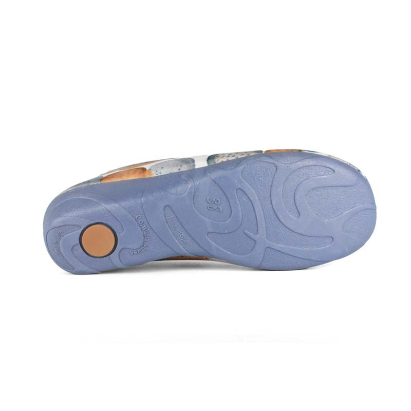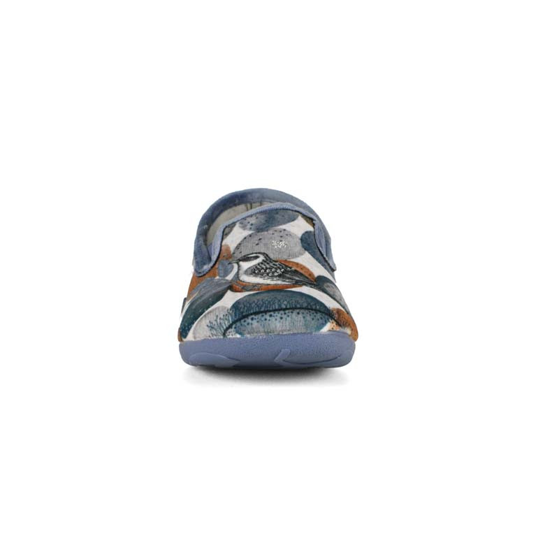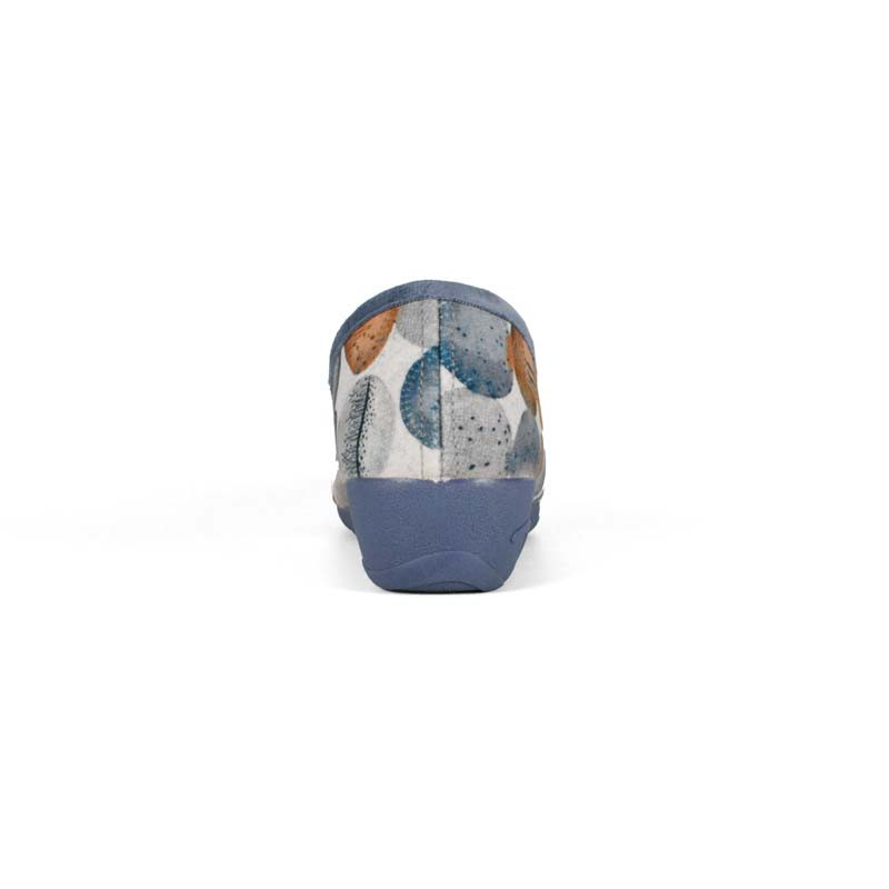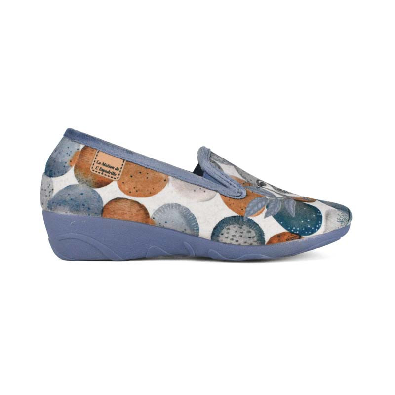 Chaussons sans gêne pour femme 6159 de La Maison de l'Espadrille agréables à porter à la maison, souples et confortables. Montés sur leur talon compensé très stable, ces chaussons sont faciles à chausser avec leurs deux élastiques d'aisance sur les côtés.