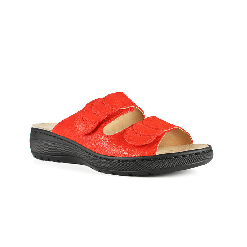 Mules Velcro pour femme GRAZIELLA de la marque SEMELFLEX, idéales pour les personnes à la recherche de bien-être pour leurs pieds ! Ces mules pour femme sont munies de deux brides Velcro sur le dessus et s'ajustent ainsi parfaitement à chaque pied. Elles vous assurent aussi un bon maintien.