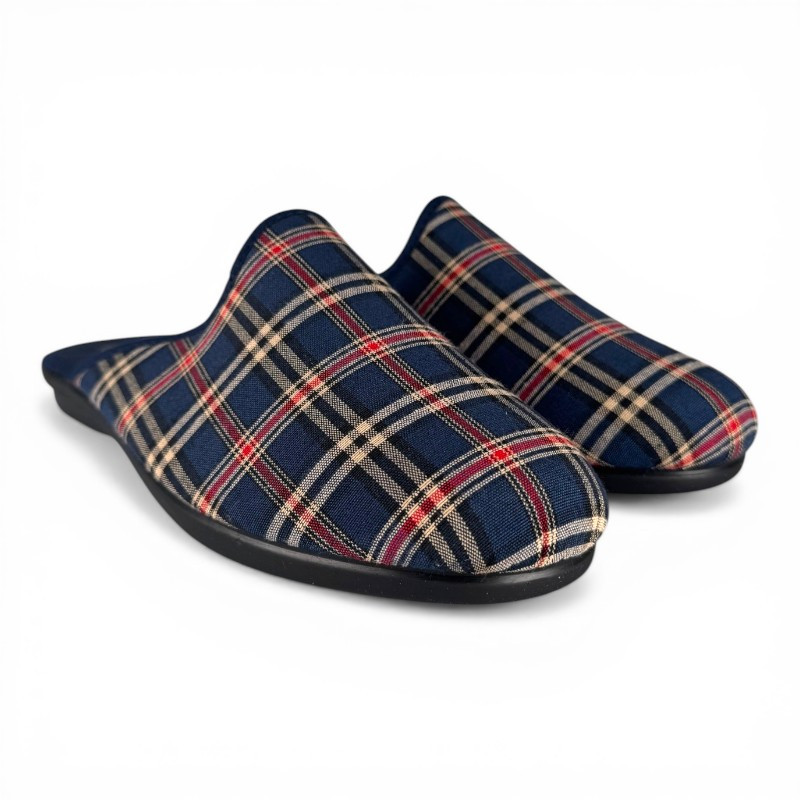 Le modèle MIKE, des mules d'intérieur pour homme de la marque SEMELFLEX, est léger et confortable. Elles sont proposées en textile imprimé à carreaux, ce qui apporte une touche chaleureuse et traditionnelle. Facile à enfiler, elle est idéale pour un usage quotidien à la maison.